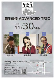 18:00 -20:00 2025.11.21  GALLERY×MUSIC BAR「ケセラ」presents ジャズ系ジャムセッションの複合イベント 小編成で練習して検討します!みんなでアンサンブルをうまくなりましょう 全パートも大歓迎です・交流して練習しましょう 譜面をお持ちください! 津田藤宏 (B) 佐野俊介(B) Open 18:30 Start 19:00 ¥2,200/2,000 +2order